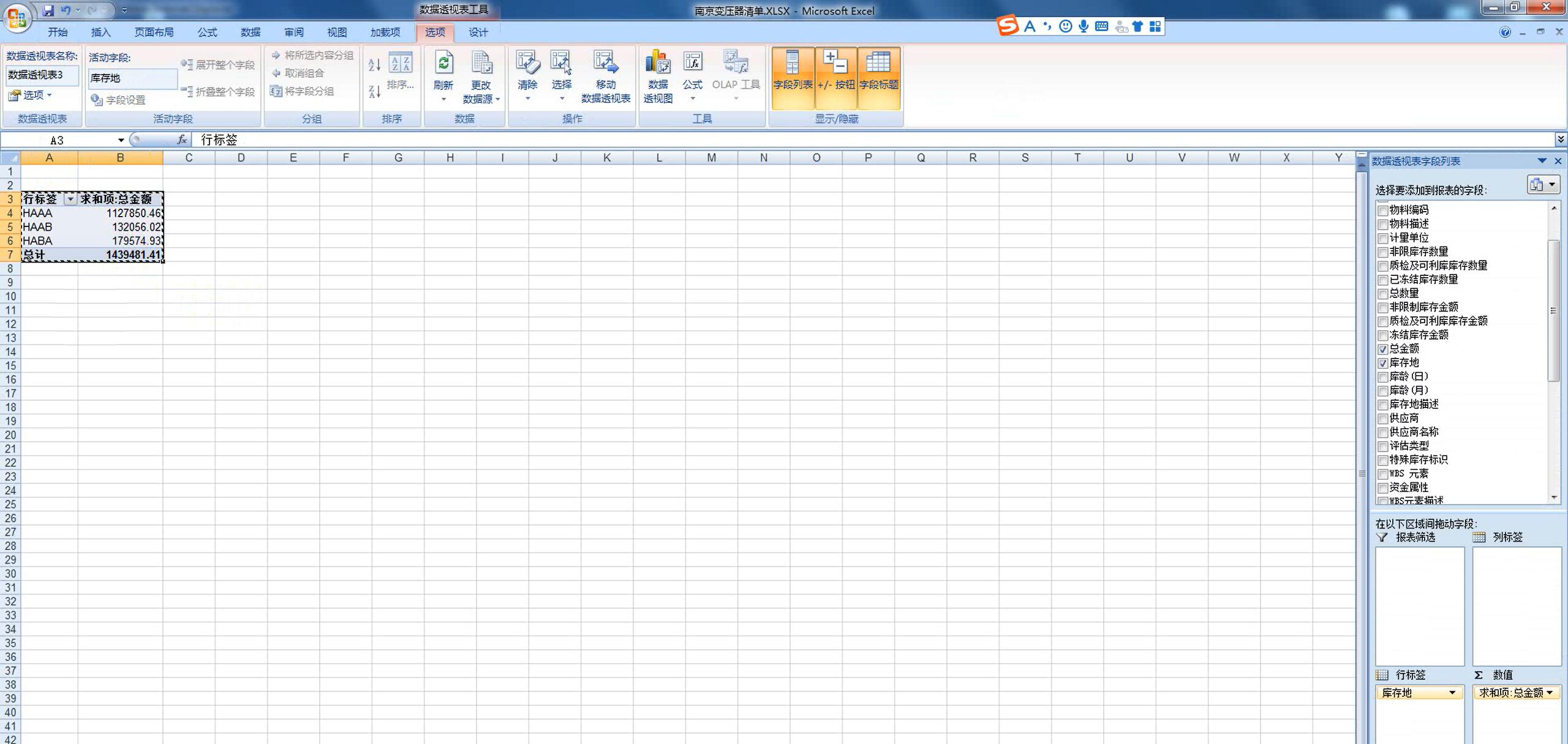 分析全市库存500001165物料号的变压器总库存